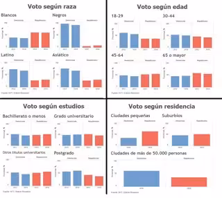 Una encuesta realizada a pie de urna por Edison Research para varios medios estadounidenses permite ver en detalle quién ha votado a quién.