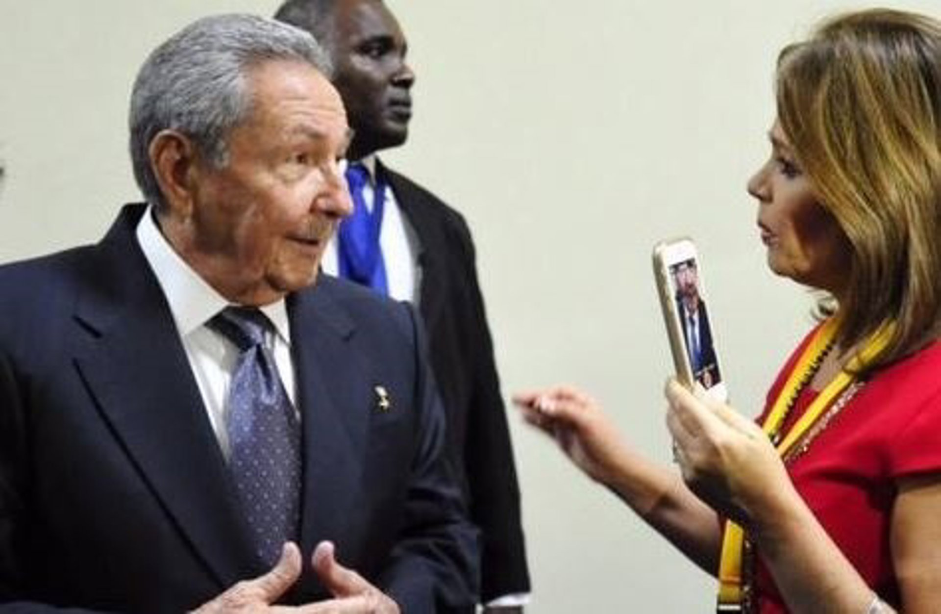 La periodista estaba conversando con miembros de la delegación cubana, cuando de pronto se percató de que Raúl Castro se encontraba a su lado. Entonces le preguntó por sus sensaciones durante su discurso de 48 minutos ante la sesión plenaria de la Cumbre de las Américas de ese mismo sábado.