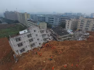 Más de 30 edificios se vinieron abajo la noche del domingo (hora local) por un desplazamiento de terreno provocado por la acumulación de residuos en las proximidades, según la versión del Ministerio de Tierras y Recursos. Solo siete personas pudieron ser rescatadas tras la catástrofe.