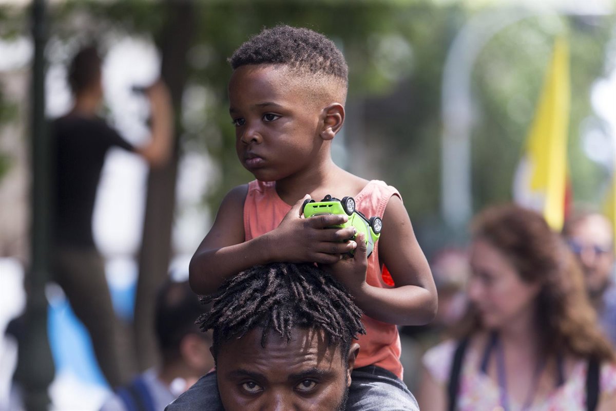 Archivo - Un hombre refugiado junto a su hijo durante una protesta en la capital de Grecia, Atenas (archivo) - Europa Press/Contacto/Marios Lolos - Archivo
