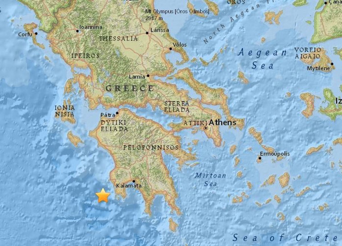 El epicentro del terremoto de magnitud 5,5 ha estado situado 70 kilómetros al suroeste de la localidad de Kalamata, mientras que el hipocentro ha estado a unos 30,4 kilómetros de profundidad, según ha informado el Servicio Geológico de Estados Unidos (USGS).