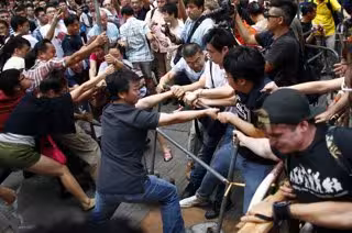 Los manifestantes prodemocráticos de Hong Kong se han enfrentado este jueves con la Policía en la zona de Mong Kok, una de las tres en las que siguen en pie los campamentos levantados en el marco del movimiento 'Occupy Hong Kong'.