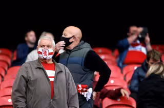 Personas con mascarilla en un estadio de fútbol en Inglaterra - 2020 GETTY IMAGES / ALEX PANTLING