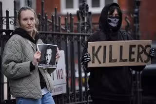 Manifestantes frente a la embajada de Rusia en Londres tras la muerte del opositor ruso Alexei Navalni - Jonathan Brady/PA Wire/dpa
