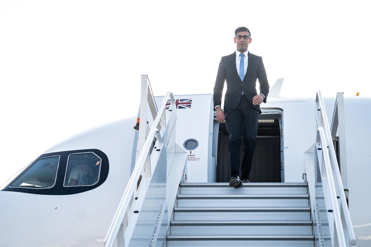Rishi Sunak, primer ministro de Reino Unido, a su llegada a Emiratos Árabes Unidos - Stefan Rousseau/PA Wire/dpa