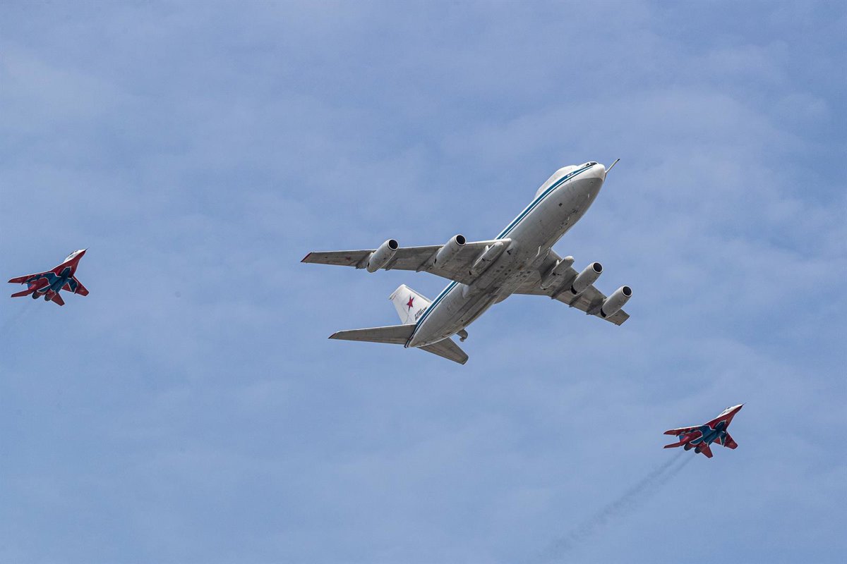 Archivo - Un Ilyushin IL-80 junto a dos aviones de combate MiG-29 durante el desfile por el Día de la Victoria en 2022 en la capital de Rusia, Moscú - Europa Press/Contacto/Bai Xueqi - Archivo