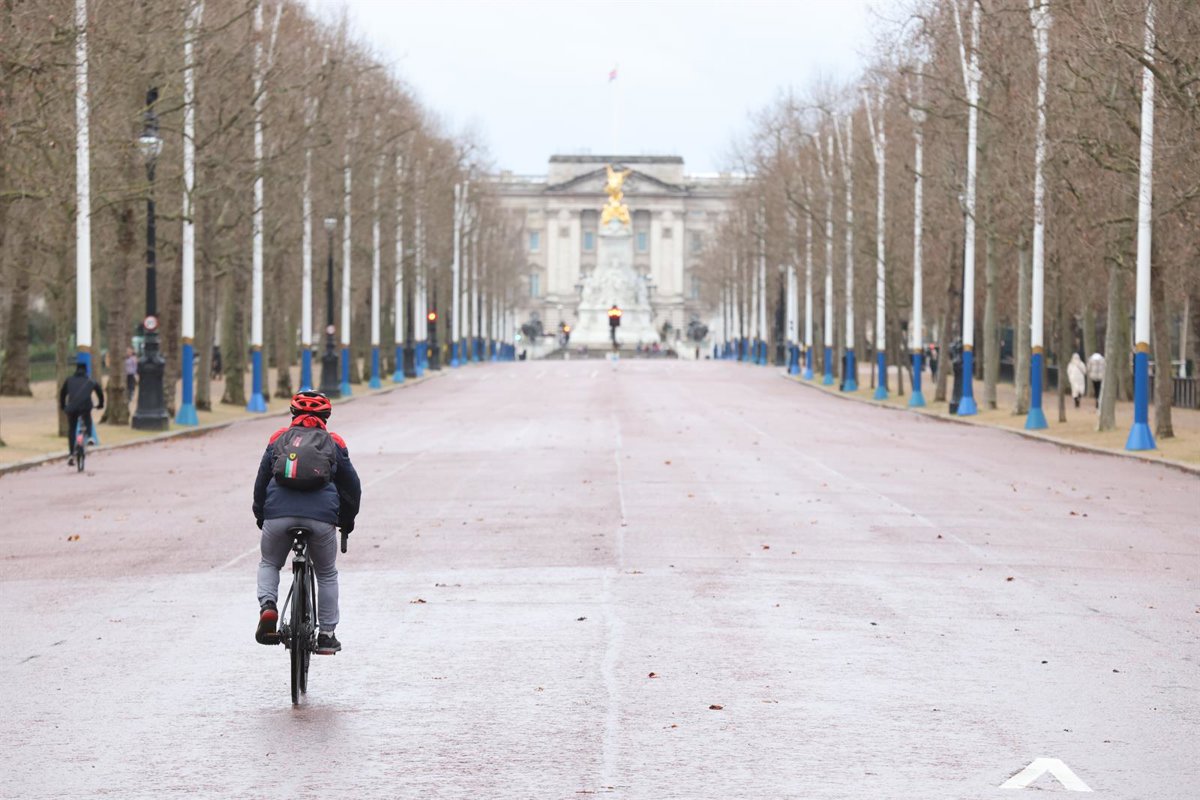 Un ciclista en Londres, la capital de Reino Unido, durante la pandemia de COVID-19. - James Manning/PA Wire/dpa