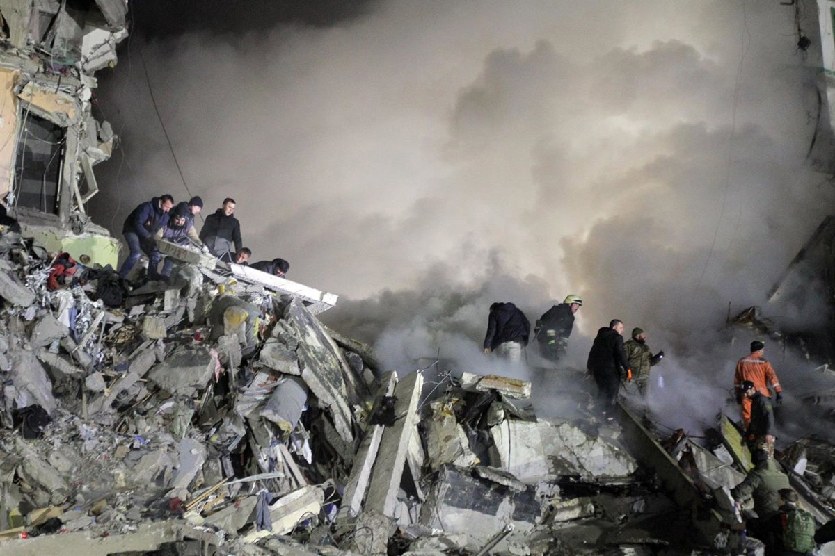 Archivo - Varios trabajadores buscan a supervivientes de un ataque ruso contra un edificio residencial de Dnipro. - -/Ukrinform/dpa - Archivo