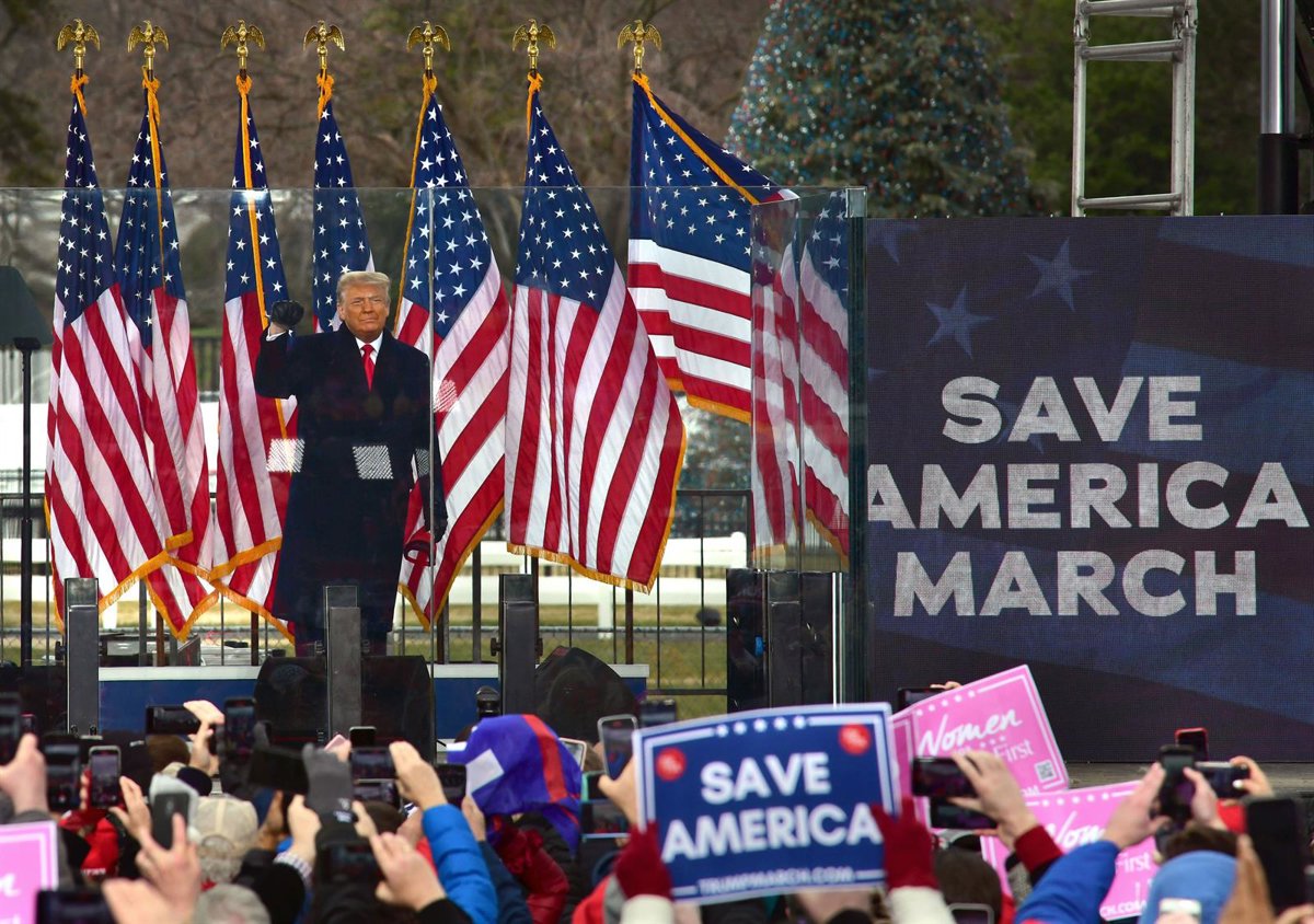 El presidente de Estados Unidos, Donald Trump, se dirige a sus seguidores poco antes de que centenares de ellos marcharan hacia la toma del Capitolio en Washington. - CAROL GUZY / ZUMA PRESS / CONTACTOPHOTO