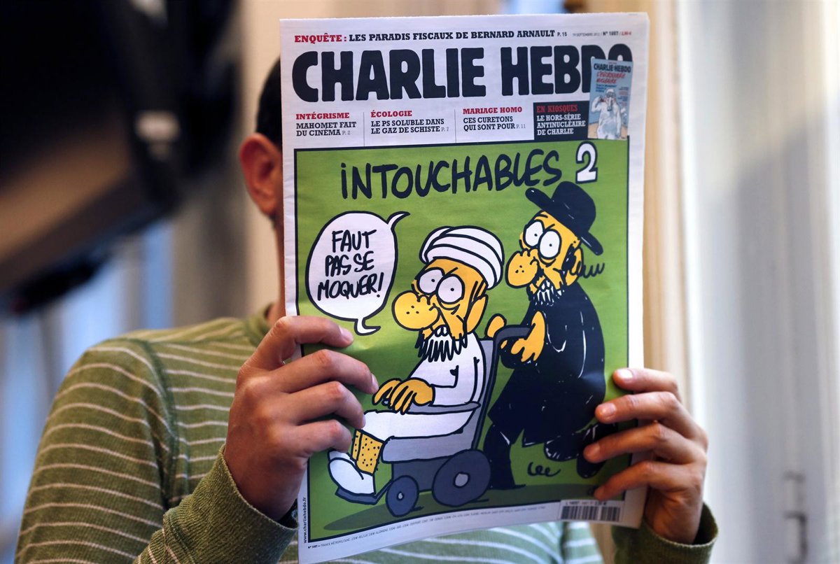En la portada del semanario aparece un dibujo de un judío ortodoxo empujando una silla de ruedas en la que está sentado un hombre con un turbante en la cabeza que dice "No deberíais burlaros", acompañado por el titular "Intocable 2" (una referencia a la película francesa 'Intocable', sobre un hombre blanco tetrapléjico y su asistente negro).