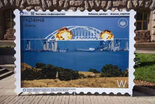 Una ilustración muestra en Kiev la destrucción parcial del puente de KErch, en Crimea - DANYLO ANTONIUK / ZUMA PRESS / CONTACTOPHOTO