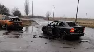 Archivo - Dos de los vehículos afectados por el misil ruso al exterior del hospital en Donestk. - HUMAN RIGTS WATCH - Archivo