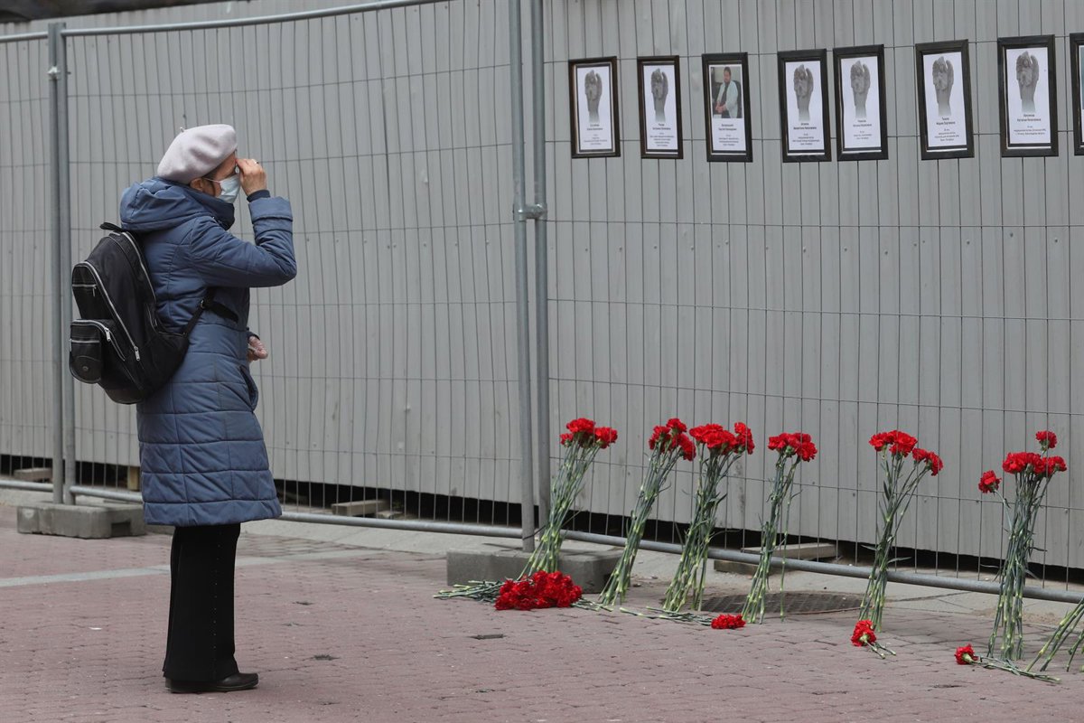 Una mujer ante un muro en el que se rinde homenaje a los trabajadores sanitarios fallecidos por el coronavirus en San Petersburgo - Sergei Mikhailichenko/SOPA Image / DPA - Archivo