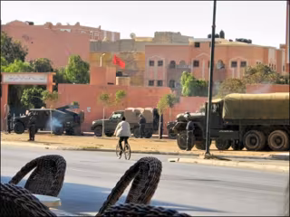 Las dos organizaciones que han presentado la denuncia este jueves por la mañana en el Registro de la sede en Madrid del departamento que dirige Luis de Guindos han exhibido ante la prensa una imagen en la que se puede apreciar con nitidez la presencia de vehículo blindado de fabricación española, un VAMTAC (Vehículo de Alta Movilidad Táctica) de la empresa española UROVESA, apostado en la puerta de un colegio en el Sáhara occidental.