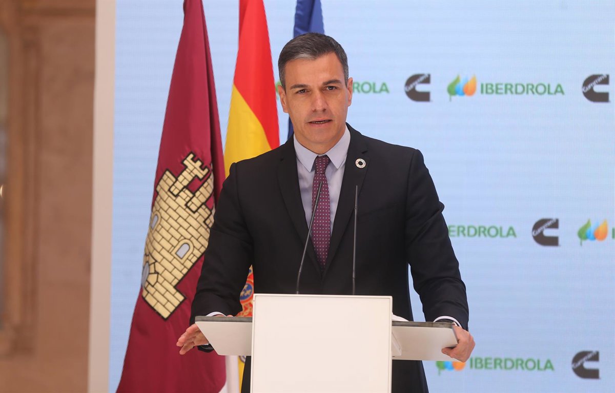 El presidente del Gobierno, Pedro Sánchez, interviene en la presentación del acto 'Haciendo de España un polo industrial del hidrógeno verde en Europa', a 24 de mayo de 2021, en Toledo, Castilla-La Mancha, (España). - Isabel Infantes - Europa Press