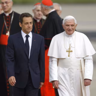Sarkozy y el Santo Padre recorrieron la alfombra roja y escucharon el himno del Vaticano y La Marsellesa, el himno francés, interpretados por la Guardia Republicana antes de dirigirse al Salón de Honor, donde el Papa saludó al conjunto del Episcopado francés.