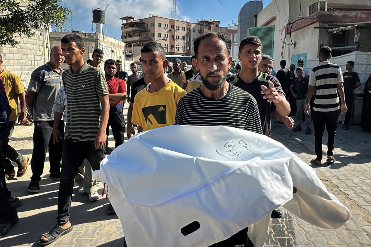Un palestino transporta el cadáver de un familiar asesinado por Israel. - Europa Press/Contacto/Moaz Abu Taha