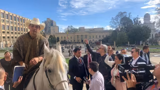 El senador colombiano Alirio Barrera, sobre un caballo a las puertas del Congreso de Colombia - VLADIMIR OLAYA