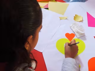 Archivo - Una niña dibuja en la Franja de Gaza - WORLD VISION/ RAED ABU JRIES - Archivo