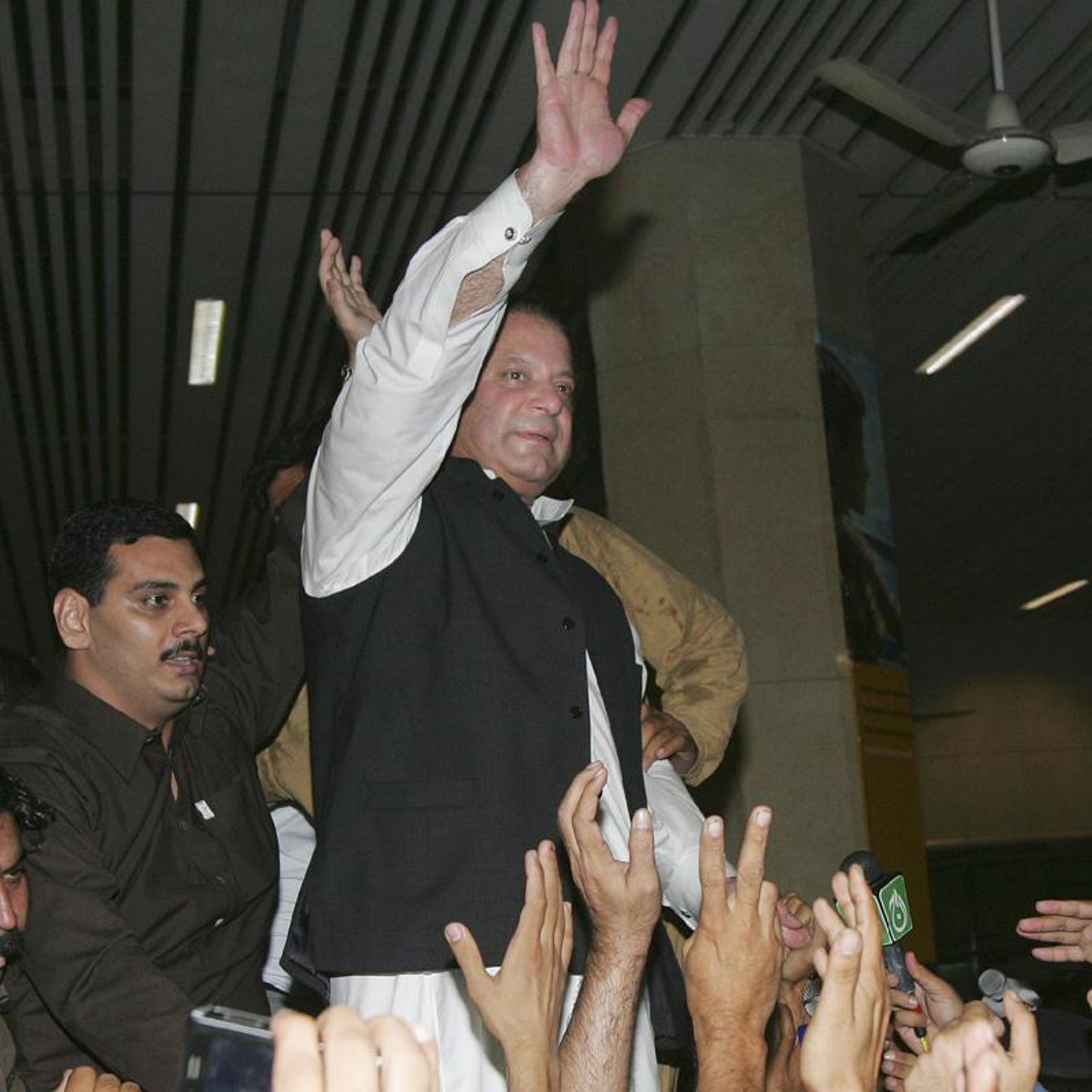 Miles de exaltados simpatizantes de la Liga Musulmana de Pakistán-N, el partido de Sharif, se reunieron en el aeropuerto de Lahore a pesar de las importantes medidas de seguridad y de la detención de 1.800 seguidores de Sharif, según denunció el partido. El ex primer ministro llegó a Pakistán en un avión desde Riad, en Arabia Saudí, donde pasó una gran parte de su exilio.