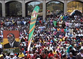Miles de personas se han manifestado este miércoles en Harare para expresar su apoyo al presidente de Zimbabue, Robert Mugabe, en respuesta a las múltiples protestas opositoras celebradas en los últimos meses.