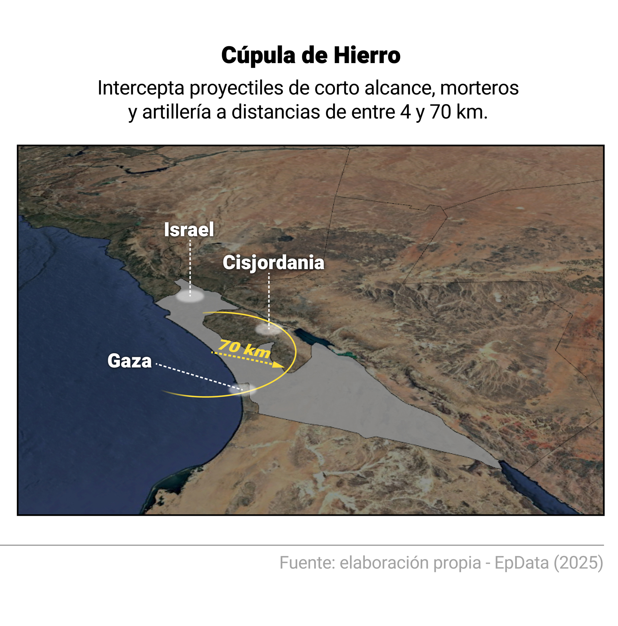 El sistema 'Cúpula de Hierro', el más conocido y publicitado de ellos, está diseñado para interceptar proyectiles de corto alcance, así como proyectiles de mortero y de artillería, en un rango de alcance de entre cuatro y 70 kilómetros desde el punto de lanzamiento.