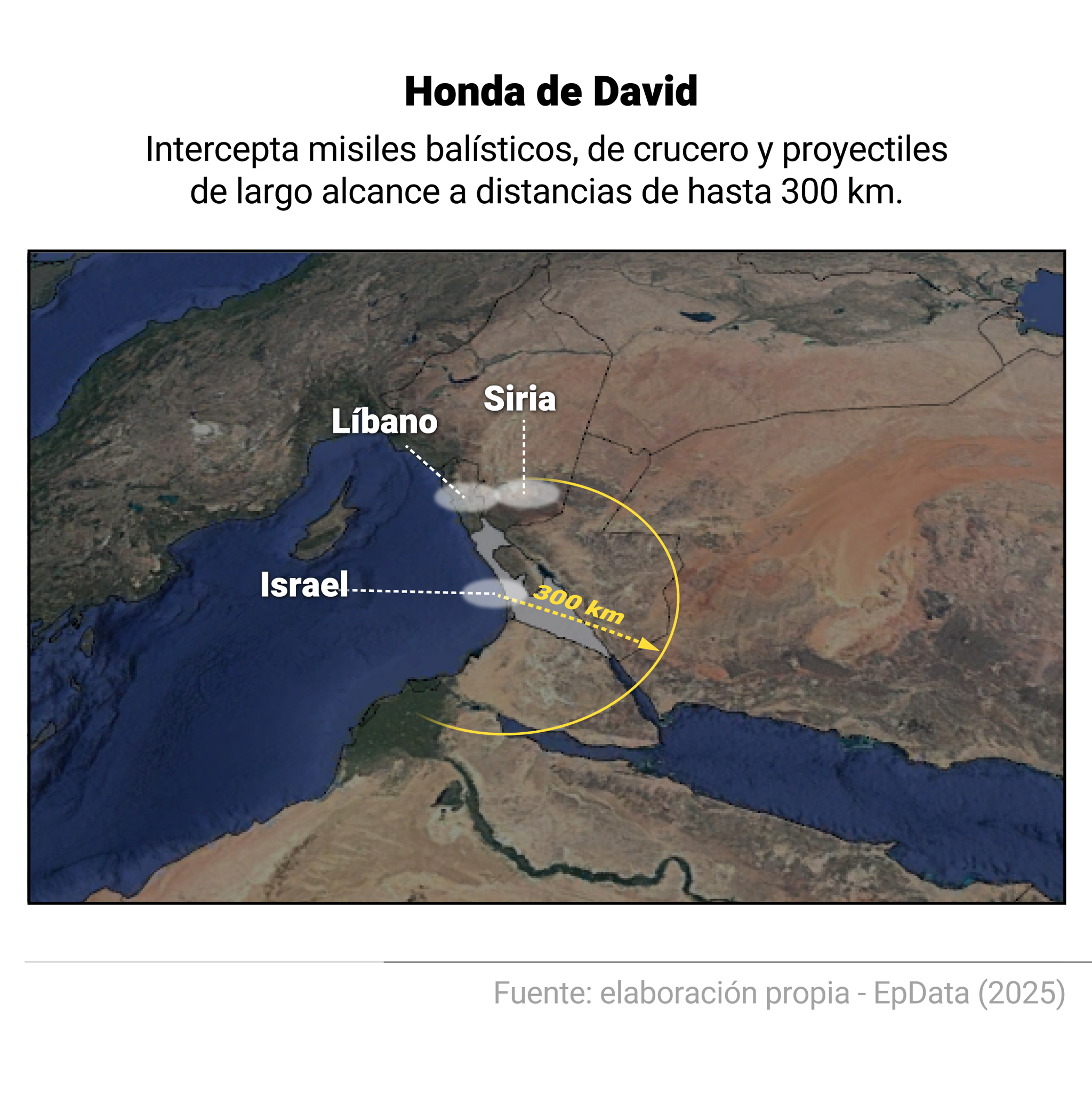 Por su parte, el sistema 'Honda de David', desarrollado por Rafael y la estadounidense Raytheon y operativo desde 2017, es empleado para la destrucción de proyectiles de largo alcance, misiles de crucero y misiles balísticos de medio y largo alcance a una distancia de hasta 300 kilómetros.