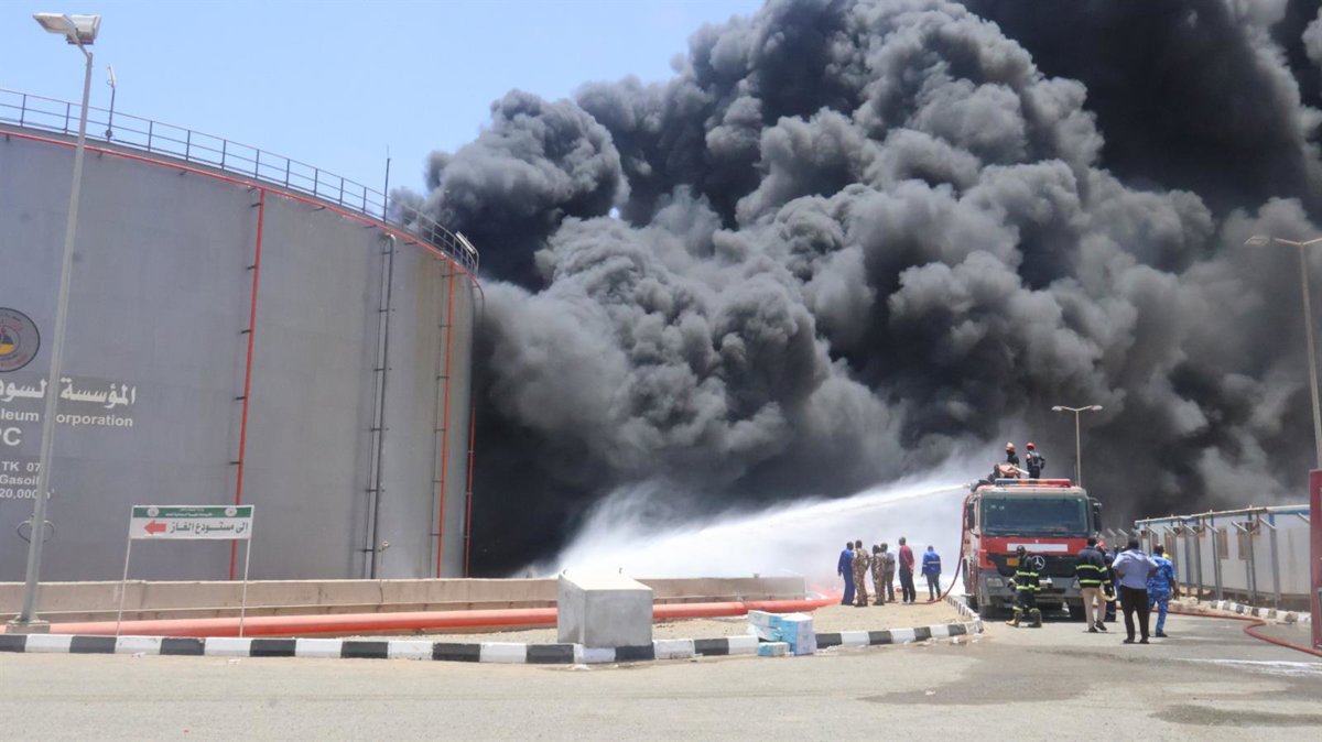 Trabajos de extinción de un incendio tras un ataque con drones en Puerto Sudán - Europa Press/Contacto/Sudanese Ministry of Energy