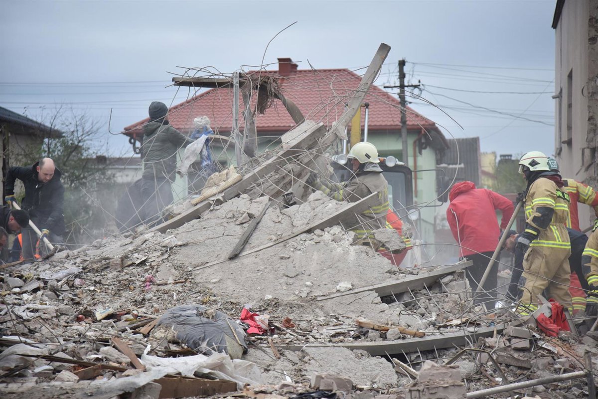 Los servicios de emergencia registran los escombros de un inmueble destruido por un ataque ruso en Leópolis - Europa Press/Contacto/Pavlo Palamarchuk