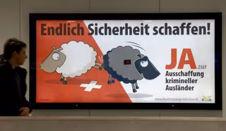 Durante la campaña, ambas partes han hecho gala de una estrategia propagandística singularmente dura. El SVP mostraba a una oveja blanca expulsando del país con una coz a una oveja negra mientras que los contrarios a la medida colocaban carteles con la cruz de la bandera suiza esbozada como una esvástica.