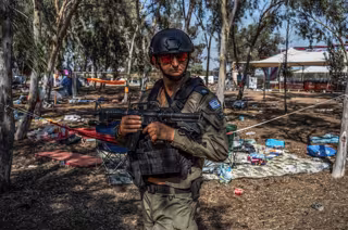 Archivo - Un soldado israelí patrulla las instalaciones del festival Supernova, blanco de los ataques de Hamás el 7 de octubre. - Ilia Yefimovich/dpa - Archivo