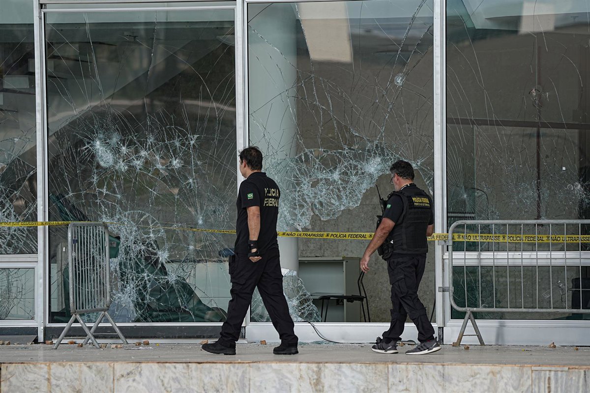 Archivo - Dos policías supervisan los destrozos de los ataques del 8 de enero en Brasilia. - PAULO LOPES / ZUMA PRESS / CONTACTOPHOTO - Archivo