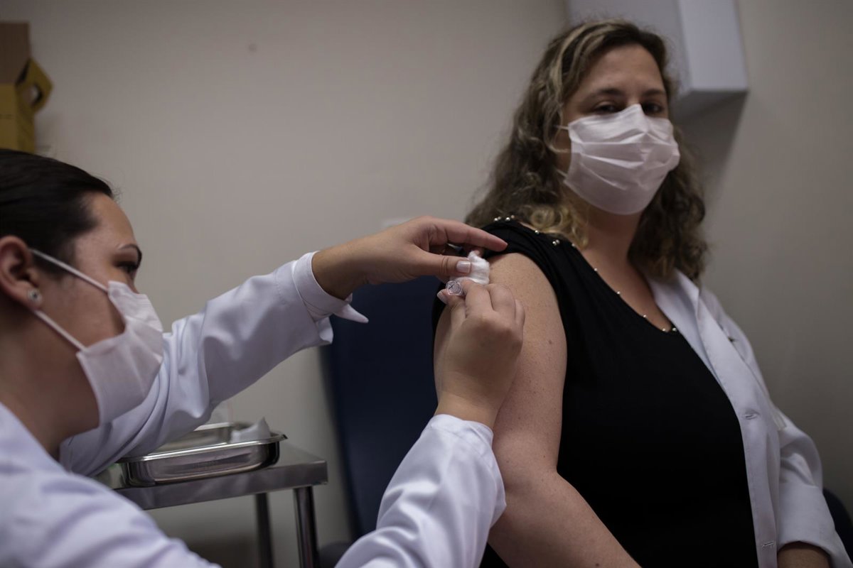 Una de las personas voluntarias en recibir la vacuna de la farmacéutica china Sinova en Brasil. - Andre Lucas/dpa - Archivo