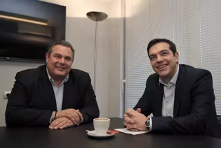 El líder de la Coalición de la Izquierda Radical (SYRIZA), Alexis Tsipras, ha cerrado un acuerdo este lunes con el líder del derechista Griegos Independientes, Panos Kammenos, para la formación de un Gobierno de coalición que plante cara a los acreedores internacionales y acabe con años de austeridad tras la aplastante victoria obtenida en las elecciones del domingo.