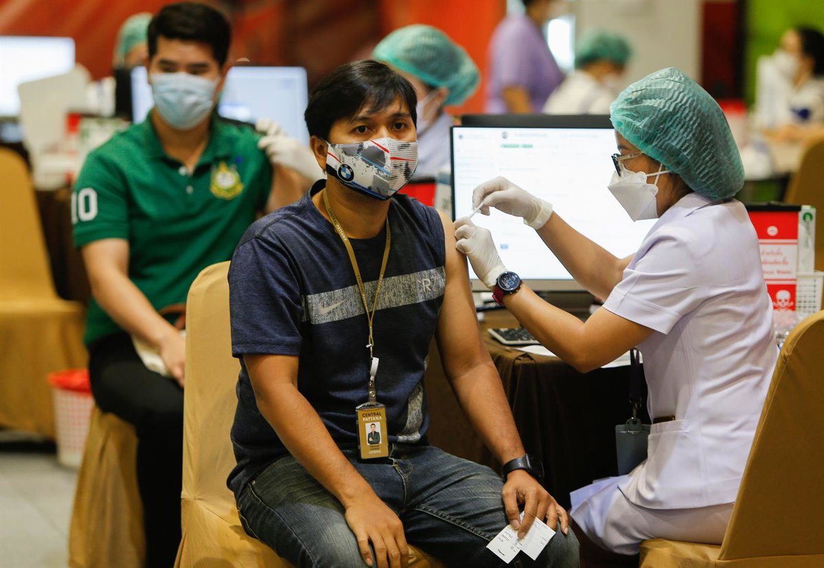 Archivo - Una trabajadora sanitaria vacuna a un hombre en Tailandia. - Chaiwat Subprasom/SOPA Images vi / DPA - Archivo