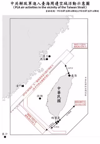 El Ministerio de Defensa taiwanés ha indicado que en torno a las 6.00 horas (hora local) se ha registrado la presencia de ocho buques y 22 aviones alrededor de Taiwán y ha destacado que 15 de ellos han cruzado la línea media del estrecho de Taiwán y han entrado desde el norte, el suroeste y el este, en la zona de identificación de defensa aérea de la isla.