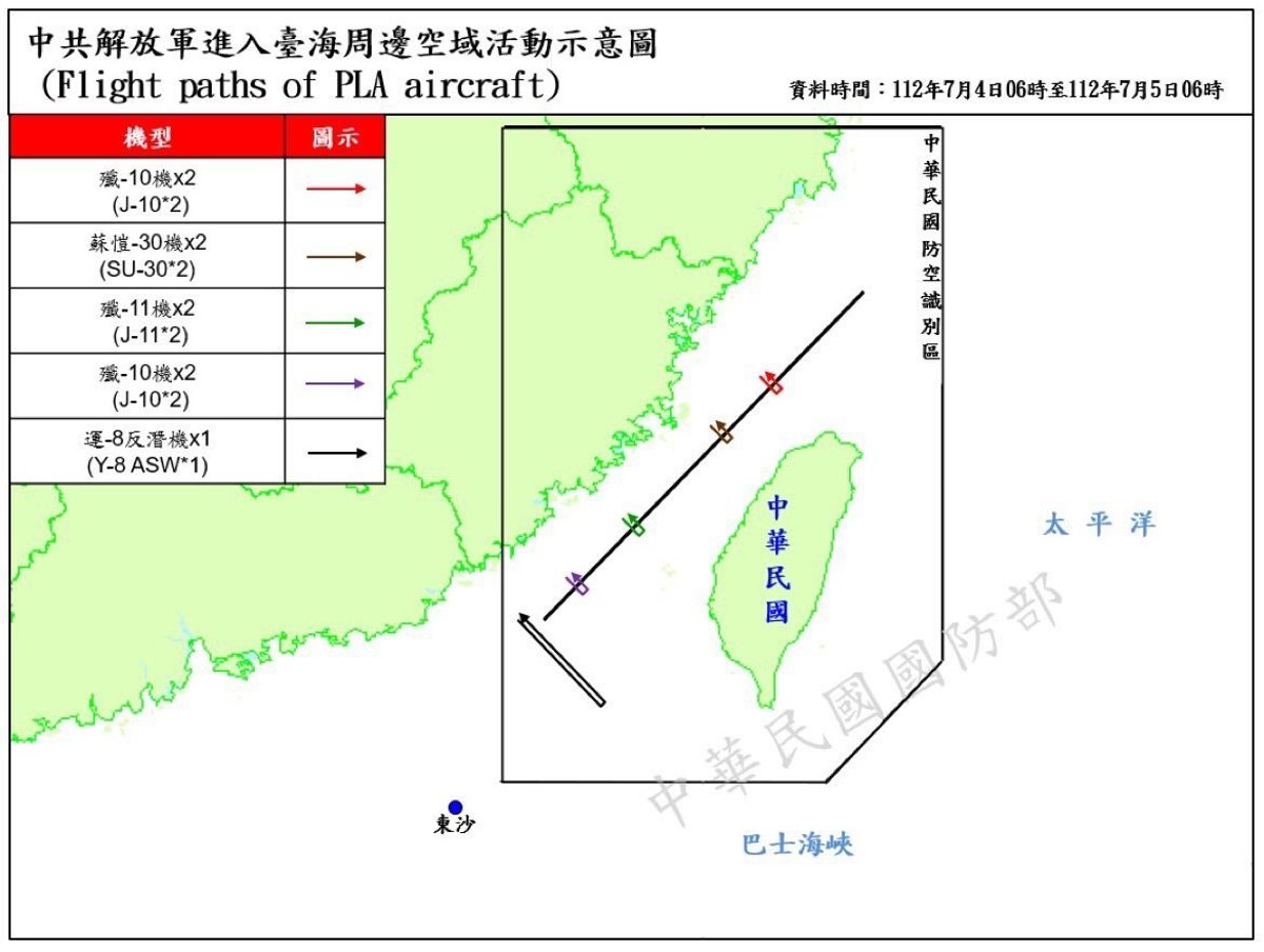Además, nueve de los aviones han traspasado el espacio aéreo por el suroeste, por lo que las Fuerzas Armadas taiwanesas han monitorizado la situación y respondido con el despliegue de aeronaves, embarcaciones y sistemas de misiles terrestres, según ha publicado el Ministerio de Defensa en su cuenta de Twitter.