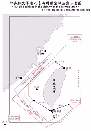 El Ministerio de Defensa taiwanés ha indicado que a las 6.00 horas (hora local) se ha registrado la presencia de siete buques y 41 aviones alrededor de Taiwán y ha destacado que 32 de ellos han cruzado la línea media del estrecho de Taiwán y han entrado, desde el norte, el suroeste y el este, en la zona de identificación de defensa aérea de la isla.