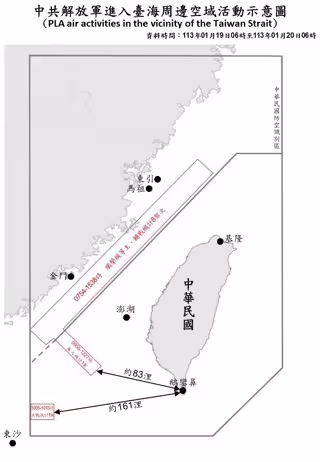Mapa de las incursiones de cazas chinos en el espacio aéreo de Taiwán - MINISTERIO DE DEFENSA DE TAIWÁN