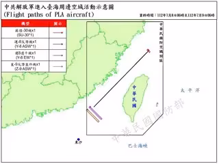 Mapa de las incursiones de cazas chinos en el espacio aéreo de Taiwán - MINISTERIO DE DEFENSA DE TAIWÁN