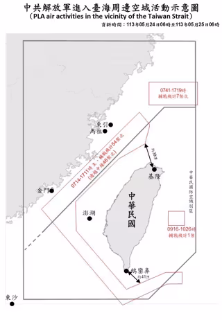 El Ministerio de Defensa de Taiwán ha anunciado este sábado de madrugada la detección de más de 60 cazas y cerca de una treintena de buques de guerra chinos en los alrededores de la isla tras dos días de maniobras militares del Ejército de China en respuesta a unas declaraciones del recién elegido presidente taiwanés, William Lei, quien instó a Pekín a "afrontar la existencia" del territorio como una entidad completamente independiente.