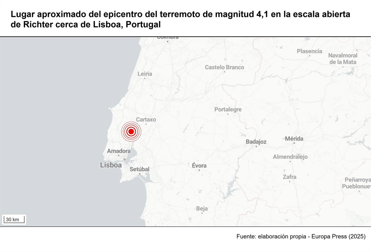 Un terremoto de magnitud 4,1 en la escala abierta de Richter ha sacudido este jueves la capital de Portugal, Lisboa, sin que por ahora haya informaciones sobre víctimas o daños.