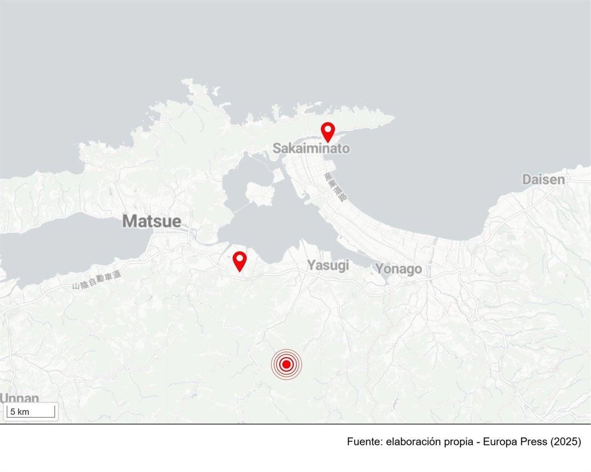 Según ha informado Agencia Japonesa de Meteorología, el temblor que ha tenido su epicentro hacia el interior de la región y a una profundidad de 10 kilómetros, ha impactado con su mayor intensidad --de 5+ sobre 7 en la escala empleada por las autoridades niponas-- en varias localidades del este de Shimane, incluida la ciudad de Matsue, y del oeste de la vecina prefectura de Tottori, incluida la ciudad de Sakaiminato.