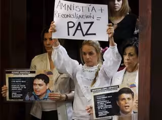 La mujer del Leopoldo López ha agregado que "hay que trabajar con datos, pruebas, registros y evidencias" para saber lo que ocurrió en las protestas de febrero de 2014, por las que su marido está condenado. "No hay paz sin justicia ni justicia sin paz", ha apostillado.
