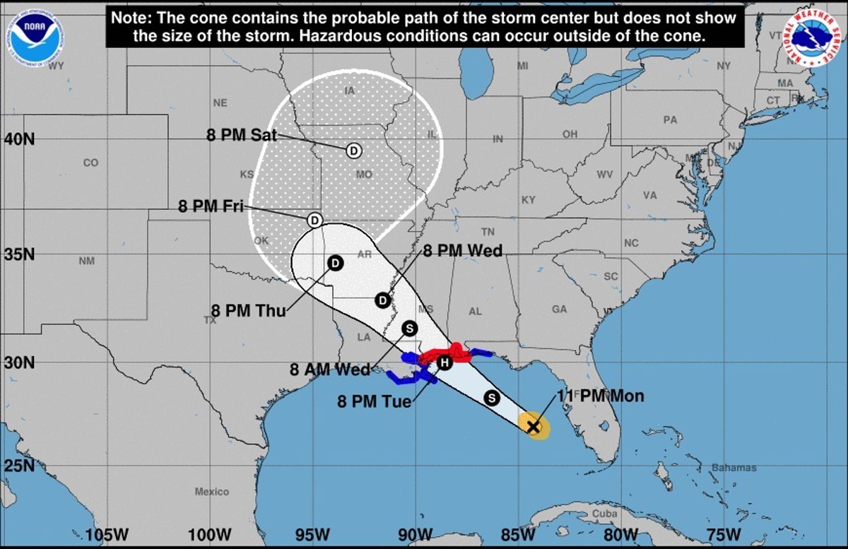 La Agencia de Gestión de Emergencias de Misisipi ha advertido de que podrían registrarse marejadas de entre 1 y 1,5 metros y ha avisado a los residentes del sur del estado que se preparen para una evacuación.