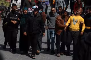 Familiares de tres pescadores muertos en una explosión cuando faenaban en aguas de la Franja de Gaza - MAJDI FATHI/TPS