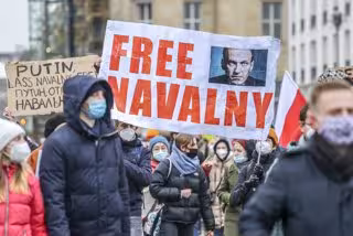 Manifestación en Berlín, Alemania, exigiendo la libertad del opositor ruso Alexei Navalni. - OMER MESSINGER/GETTY IMAGES