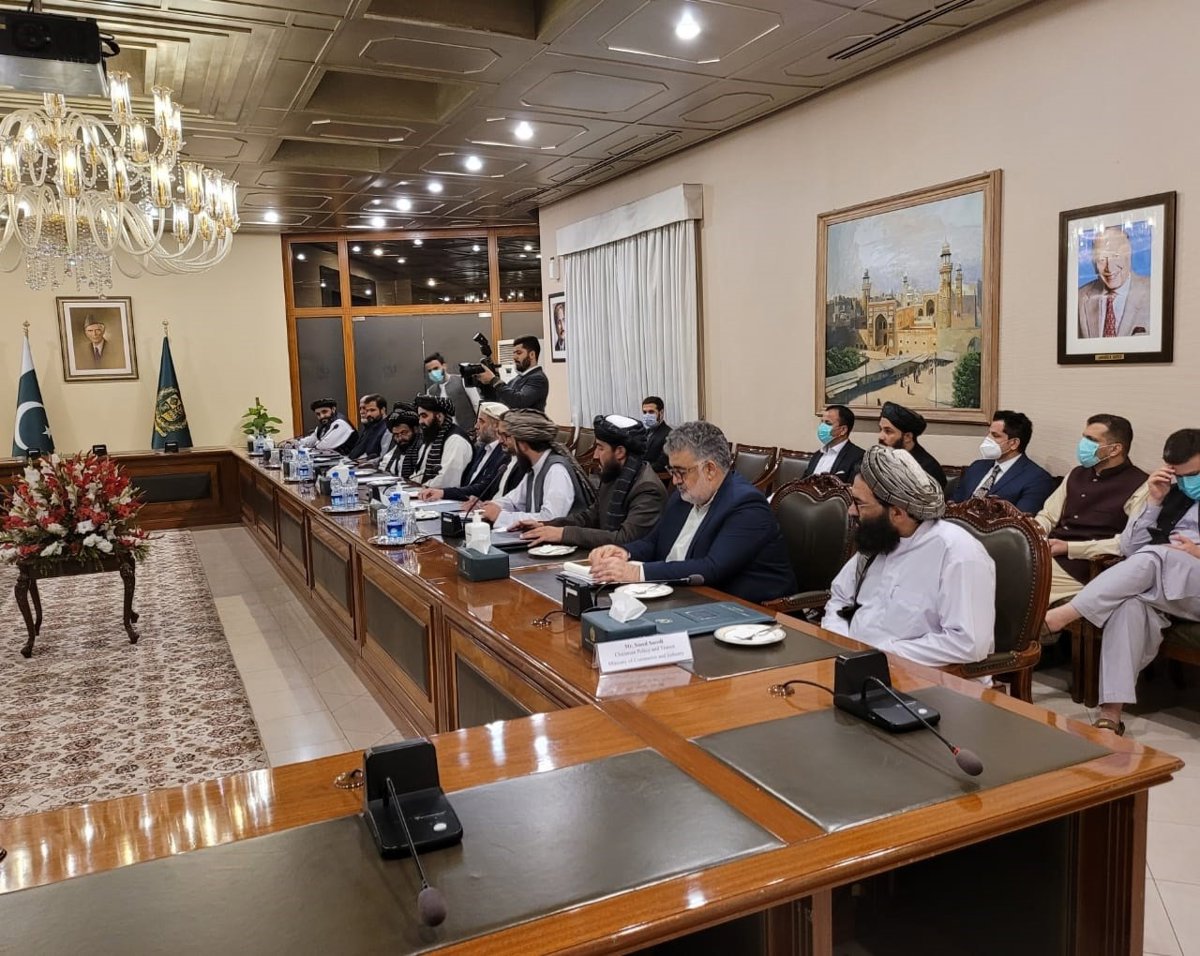 Delegación del Gobierno afgano durante una visita a representantes paquistaníes en la capital de Pakistán, Islamabad - TWITTER ABDULQAHAR BALJI