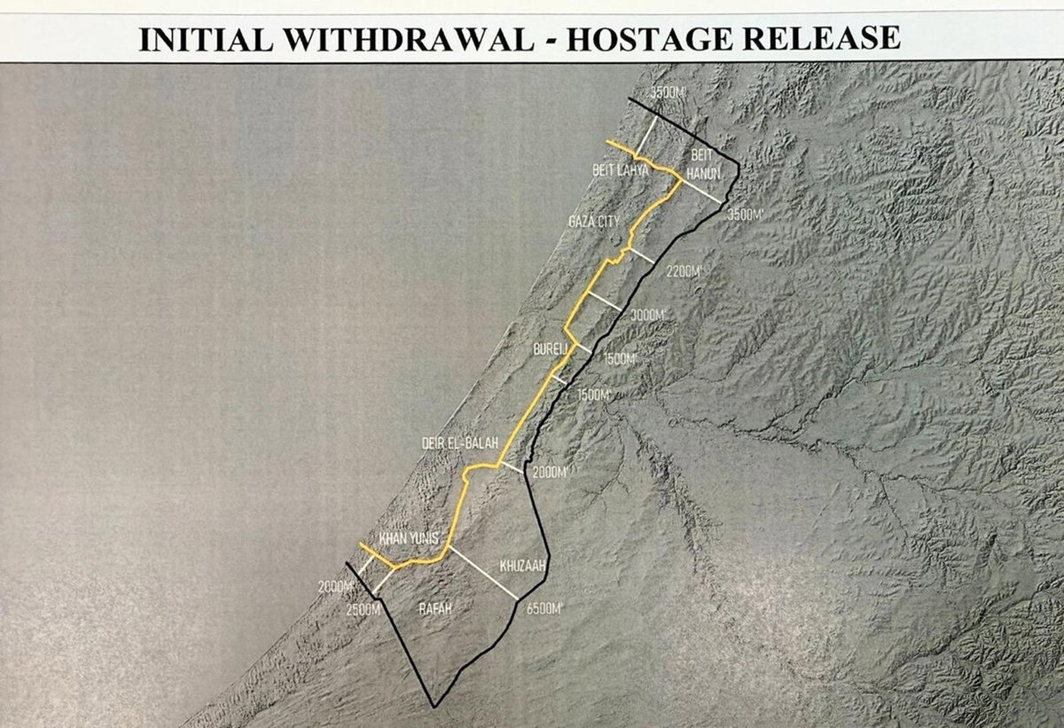 Línea de retirada israelí en la primera fase del plan de alto el fuego de Donald Trump - CASA BLANCA