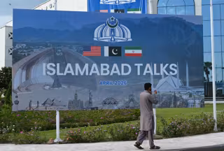 Cartel de las negociaciones de Islamabad entre Estados Unidos e Irán - Europa Press/Contacto/Ahmad Kamal